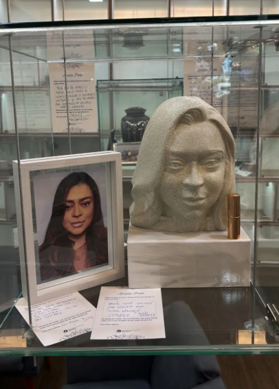 Além do busto, o nicho que recebe a escultura conta ainda com uma foto de Preta Gil, um batom deixado pelos familiares e mais de 100 cartões de mensagens deixadas por amigos e familiares, entre eles Regina Casé, Juliana Alves, Bela Gil, Carolina Dieckmmann, Renê Silva, Clara Buarque, Sol de Maria, Lore Improta e Pai Calixto.